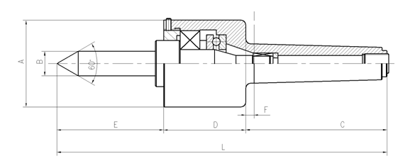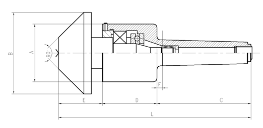 回轉頂尖特點: 1.旋轉時保證精度為0.06mm 2采用雙重接觸軸承,提高了旋轉精密度,具有持久的壽命。 3.頂尖軸的熱處理硬度為HRC60±2,保證了優秀的耐久性。 4.可按要求定做